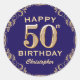 50th Birthday Party Navy Blue and Gold Glitter Classic Round Sticker