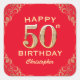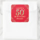 50th Birthday Party Red and Gold Glitter Frame Square Sticker