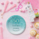 50th Birthday Party Sparkle Teal Blue Glitter Paper Plate