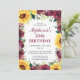 These 50th birthday party invitations feature a watercolor floral border of sunflowers, burgundy roses and greenery foliage. Personalize them with your own text.