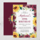 50th Birthday Party Sunflower Burgundy Rose Border Invitation