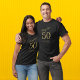 Celebrate in style with this chic 50th birthday t-shirt! This black t-shirt features gold script to commemorate the special milestone and can be easily personalized with your own special message. Whether you’re celebrating someone you love or planning a bash for yourself, this t-shirt is a great way to stand out and make the event even more memorable.