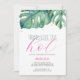 Tropic like it's hot 50th birthday invitation features a top board of my original watercolor monstera palm leaves in shades of green and turquoise. Your party details are set in a trendy script typography and serif font. Customize this template for 50 and fabulous tropical parties or a Hawaiian luau. To see more fun beach themes and fab invites by Victoria Grigaliunas visit www.zazzle.com/dotellabelle