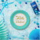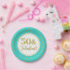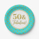 50th Birthday Party Turquoise White Gold Dots Paper Plate