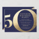 50th birthday invitation featuring a big 50. It has a fun and elegant layout and it features a beautiful gold texture