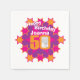 Celebrate a 50th Birthday with these fun pink yellow and purple girls star patterned fiftieth birthday photo and name napkins. Great idea for adding some fun to a 50th birthday party. Reads Happy Birthday Melissa 50, customize with your own birthday girls photo and choice of name. Design by Sarah Trett.
