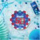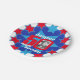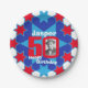 Celebrate a 50th Birthday with this fun blue red and white boys star patterned fiftieth birthday photo and name disposable paper plate. Great idea for adding some fun to a 50th birthday party. Reads Happy Birthday Jasper 50, customize with your own birthday mens photo and choice of name. Ideal to add some fun and a personal touch to a special birthday boys fifty birthday party. Design by Sarah Trett.