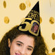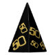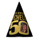 Bold add your own photo and name party hat. Ideal for a special 50th birthday party celebration. Classic black and gold coloured design. Other matching birthday items and colour options are available. Original graphic art and design by www.mylittleeden.com