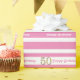 Bright, vibrant and modern horizontal stripes in a pastel, soft pink and white with a gold numeral fifty. IDEAL FOR - Special fiftieth wedding, business anniversaries and woman's milestone birthdays.