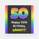 This upbeat and joyful birthday-themed paper napkin design features a large number “50“ with a vibrant multicolored rainbow spectrum inspired gradient pattern, along with the message “Happy 50th Birthday,”, and an editable recipient name. Bold birthday themed paper napkins like these might be used at a birthday party for somebody who is celebrating their 50th birthday. [~Z0000629]