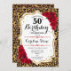 50th Birthday - Red Gold Leopard Print Invitation