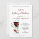 50th Birthday Red Wine Watercolor Party Invitation. 50th birthday party invitation for her or him. Invitation with watercolor red wine glass, roses and twigs on a white background. The text is fully customizable - personalize it with your name, any age - 30th 40th 50th 60th 70th 80th 90th 100th, date and time, location and RSVP. You can use the invite for the surprise birthday party or erase the surprise text.