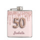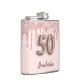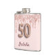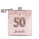 A gift from friends for a girly and glamourous 50th birthday. A light rose gold, pink background with elegant rose gold drips, paint dripping look. The text: The name is written in dark rose gold with a modern hand lettered style script. Personalize and add a name. Number 50 is written with a rose gold balloon style font.