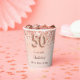 For a glamourous and girly 50th birthday party. A rose gold gradient background. On the front and the back: Personalize and add a name and a date. Decorated with faux glitter dust. Nr 50 is written with a balloon style font.