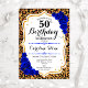 50th Birthday - Royal Blue Gold Leopard Print Invitation