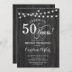 Rustic simple design with dark gray wood pattern and fairy string lights. Features script font. Cheers to 50 years. Can be personalized into any age! Message me if you need further customization.