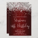 50th Birthday Silver Glitter Dark Red Ombre Invitation
