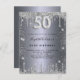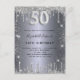 A modern, stylish and glamourous invitation for a 50th birthday party. A faux silver looking background, decorated with glitter dust. Personalize and add your name nad party details. Number 50 is written with a balloon style font, script.