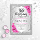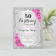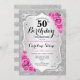 50th Birthday - Silver Stripes Pink Roses Invitation