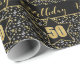 50th Birthday Star on Black with Silver Gold Wrapping Paper