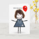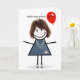 50th Birthday Stick Figure Girl with Red Balloon Card