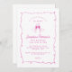 Invitation de fête surprise Whimsical, dessinée à la main pour le doodle 50e anniversaire. Deux verres de vin et un sprig botanique accentuent le texte simple. Le tout est entouré d'un cadre de gribouillis rose. Moderne et minimaliste, cette invitation rose est très en vogue pour le printemps et l'été 2025.