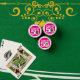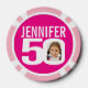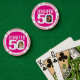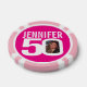 50th happy birthday custom name now and then photo pink poker chips. Fun fiftieth birthday party personalized chips with your own two photos in the middle of the number 0 in 50 on the front and back ideal for a past and present photo. A great idea for adding some fun to a milestone fiftieth birthday party event, or a gaming 50th birthday get together. Other matching 50th birthday party items are available. Designed by www.mylittleeden.com