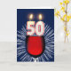 A birthday glass of wine with candles. The candles are made up of the number 50, for an 50th birthday. Fireworks are exploding in the background. A birthday card suitable for anybody, male or female.