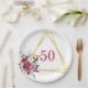 Happy 50th with a trendy watercolor floral gold geometric design.