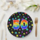 This colourful, fun, and cheerful paper plate design features a large number "50" coloured with a rainbow spectrum gradient inspired pattern. The background features a pattern of colourful star shapes. Paper plates like this might be fun to use at a celebration being held to honour somebody who is celebrating their fiftieth birthday, or a couple’s 50th anniversary, or some other 50th event. [~Z0000493]