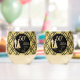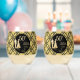 50th Gold Wedding Anniversary glass - featuring gold and black glitter on the sides with floral black glitter and the Golden glitter couple, this glass stands for an unique, elegant, chic 50th Wedding Anniversary glass that can be used at the Celebration party and keep it as a Fond memory of the special event afterwards. This design is made in this way in order to reflect the beautiful circle of life!