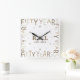 50th Gold Wedding Anniversary Gift Square Wall Clock