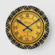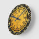 50th Gold Wedding Anniversary Wall Clock - featuring gold and black glitter on the sides with floral gold glitter and a round metallic gold shape, this wall clock stands for an unique, elegant, chic 50th Wedding Anniversary gift. You can personalize the names of the Couple, Year of Anniversary and date!