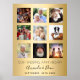 A board for celebrating a 50th gold wedding anniversary. An elegant faux gold coloured background decorated. Personalize and add 9 of your own photo of the happy couple. The text: The names is written with a black modern hand lettered style script. Tempates for names and a date. Can be used as a party welcome sign or as party wall decoration.