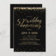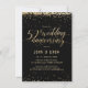 This elegant and festive 4.5" x 6.25" 50th, fiftieth, Golden Wedding Anniversary Party Invitation features gold (simulated foil) confetti with the words "50th wedding anniversary" showing in a gold script font. The background is black, but can be changed to any colour of your choice. The celebration details can be easily customized for your special event. The back of the card features a gold dotted pattern, also with a black background that you can customize to your liking. A beautiful and simple way to invite guests to celebrate a golden wedding anniversary.