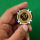 Poker Chip. 50th Golden Years Anniversary Design. Works great for an anniversary, birthday, retirement, etc... Makes a great party favour keepsake. ✔NOTE: ONLY CHANGE THE TEMPLATE AREAS NEEDED! 😀 If needed, you can remove the text and start fresh adding whatever text and font you like. 📌If you need further customization, please click the "Click to Customize further" or "Customize or Edit Design" button and use our design tool to resize, rotate, change text colour, add text and so much more. ⭐This Product is 100% Customizable. Graphics and / or text can be added, deleted, moved, resized, changed around, rotated, etc... ⭐99% of my designs in my store are done in layers. This makes it easy for you to resize and move the graphics and text around so that it will fit each product perfectly. 📌 (Please be sure to resize or move graphics if needed before ordering) You can also "TRANSFER DESIGN" on other Zazzle products and adjust the design to fit most of Zazzle items. (button is down on the right side of the page) This design is made with high resolution vector and/or digital graphics for a professional print. 📌NOTE: (THIS IS A PRINT. All #Zazzlemade product designs are "prints" unless otherwise stated under "About This Product" on the left side of this page) The design will be printed "EXACTLY" like you see it on the screen and on the product...so please make sure when you do your changes on the resizing of any of the graphics or text that it fits in the areas correctly and that your spelling and wording is how you like it to be in size, colour and font. If you have any questions about the "DESIGN ONLY" or need help please contact me at ✉ siggyscott@comcast.net or visit my store link: https://www.zazzle.com/store/designsbydonnasiggy (Copy and Paste) I'll be happy to help. 📌 ALL OTHER QUESTIONS (shipping, refund, the printing, the product, etc...) please contact Zazzle or the Maker ⭐DIRECTLY⭐. Thank you for the support and stopping by my store - DesignsbyDonnaSiggy. © Donna Siegrist ⭐⭐⭐ ZAZZLE promises 100% satisfaction. If you don't absolutely love it, Zazzle will take it back! ⭐⭐⭐ 1-888-8ZAZZLE (1-888-892-9953) Phone hours: Mon - Fri: 9AM - 5PM PT (12PM - 8PM ET)