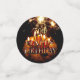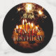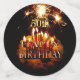Pictured is a Birthday cake with candles and sparklers with a happy Birthday logo