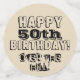 Over the Hill 50th Birthday. Personalize for any age for male or female. Fun black text on light brown background. Medium size has flying balloons in red, yellow, orange, green, blue on a white background on front and back. Sprinkle table confetti on party tables for some festive fun. Original Graphic Artwork design by TamiraZDesigns.