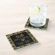 50th Wedding Anniversary Black & Gold Damasks Glass Coaster
