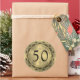 Elegant 50th wedding anniversary with a black lace border frame and metallic look gold background.