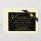 Create your own personalized 50th Wedding Anniversary Party Invitations -- Ivory and black with [printed] ebony ribbon and golden gemstone heart. Classic engraved-look typography with fancy vintage style swash script gold lettering -- Elegant, affordable luxury, and uniquely customized for you! Just add the names, date, and details for your special milestone anniversary celebration. **NOTE: All elements of this design are part of the PRINTED image -- the ribbon, jewelled brooch, and frame are NOT raised, embossed, or presented as real embellishments. Sized for small invitation cards. Click "Customize It" to change the size, paper options, or font choices. Other sizes and styles available in gallery. © Teri Francis. Coordinating sets with matching postage and thank you cards available upon request.