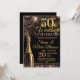 A stylish 50th Wedding Anniversary Party Invitation featuring a bottle of bubbly in gold, fireworks with gold and pink text all on a black background .A gorgeous invitation to send to family and friends to celebrate the special event. All text can be amended as needed - more text can be added on the back or delete the text box if need needed.