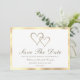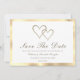 It's a special year, a 50th wedding anniversary and a celebration with friends and family is an absolute must. However, if you know you want to celebrate but aren't sure of the details yet, a save the date card would be a great way of letting family and friends know they need to keep the date free. The card has a light gold border colour effect (not foil gold) and two romantic gold love hearts (not foil gold) to represent the adorable couple. The design is elegant in gold and white and can be personalised with the inclusion of the details of the celebration.