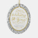 50th Wedding Anniversary Gold Silver Damask Hearts Ceramic Ornament