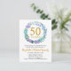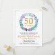 This invitation postcard for your 50th wedding anniversary features a delicate floral greenery wreath made of bluebells, plants, and lilac flowers. Invitation can be easily personalized with your special golden vow renewal information.