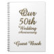 Our 50th Wedding Anniversary Party Guest Book Chic Elegant Gold Typography White, Spiral Notebook