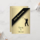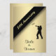 Elegant 50th Anniversary Party Invitations with script letterpress style typography on gold - This unique golden invitation is accented with a trumpet player and music notes. Add the names, date, and details. A beautiful invitation that can be easily customized for many special occasions and happy milestone celebrations -- The colour is perfect for a Golden Anniversary but the text can be used for any anniversary party, birthday party, wedding, save the date, exclusive affair or event.
