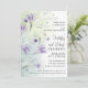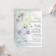 Soft purple watercolor flowers decorate this elegant handpainted 50th wedding anniversary party invitation. Trendy typography gives the text a modern and casual vibe. A soft green watercolor wash on the front and back creates a sophisticated palette.