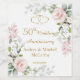 50th Wedding Anniversary wine label with the images of pinkish roses, greenery foliage and joined hearts. Personalize with your names and date.