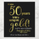 A fabulous custom 50th wedding anniversary design. This black and gold design is a gorgeous way to send a heart felt 50th wedding anniversary message. The gold typography states 'It takes 50 years to turn a marriage into gold'. A stylish black and gold personalized design they are sure to love.